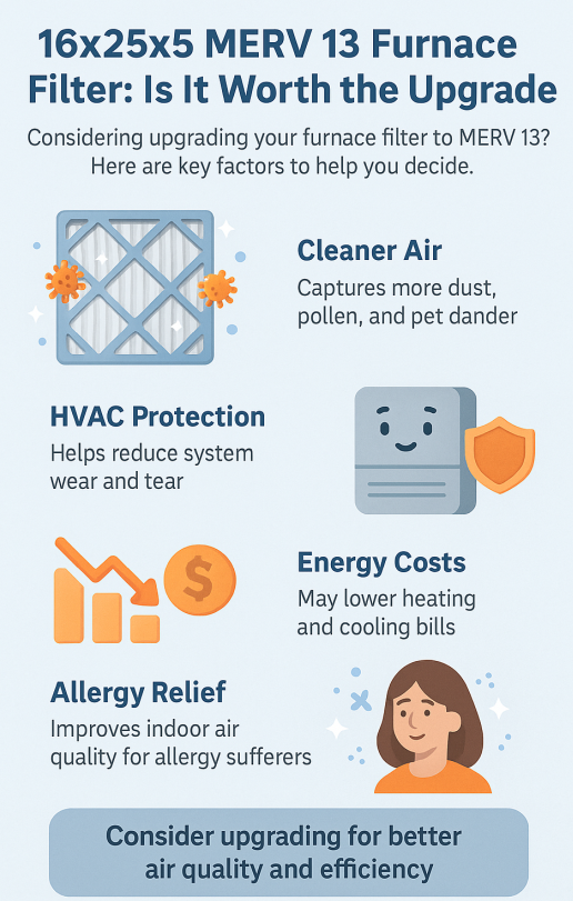 Is upgrading to a 16x25x5 MERV 13 furnace filter really worth it? You’re not alone. Many homeowners are asking the same thing: Does a higher-rated filter actually deliver noticeably cleaner air and help lower energy bills, or is it just marketing hype?